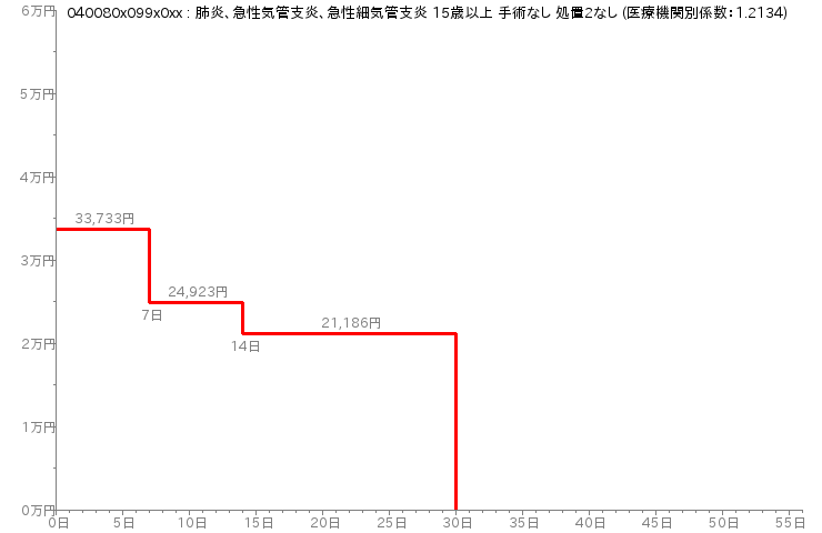 チャートの上部にDPCコード、DPC名称、および金額計算に使用した医療機関別係数を表示しています。